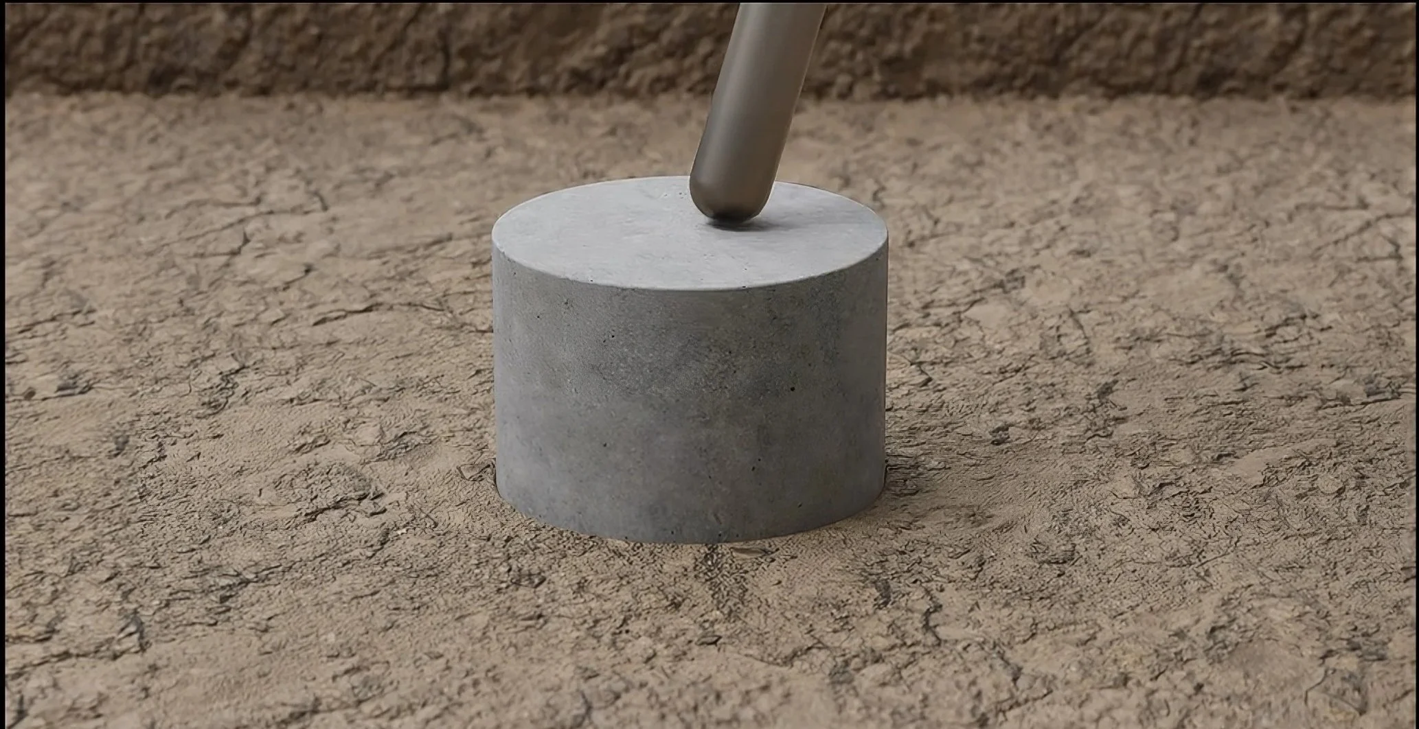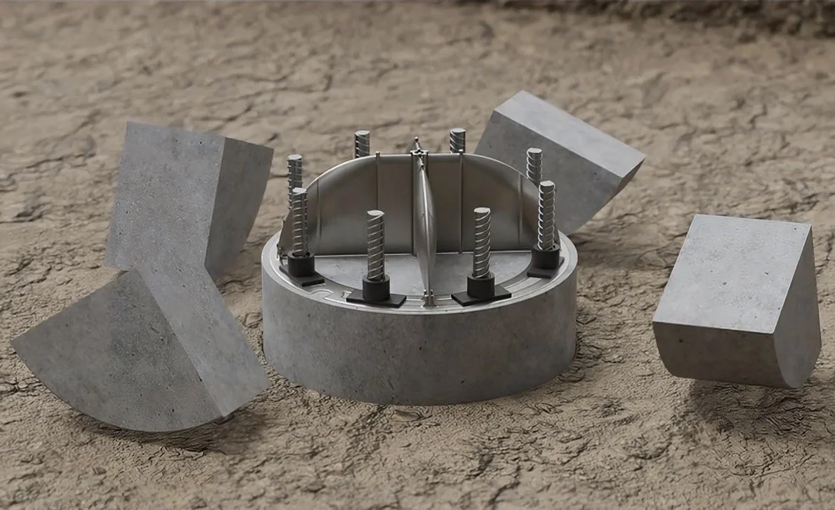The concrete is poured and sets around the cage, with the Edlietech system creating a controlled weak point at cut-off level.
